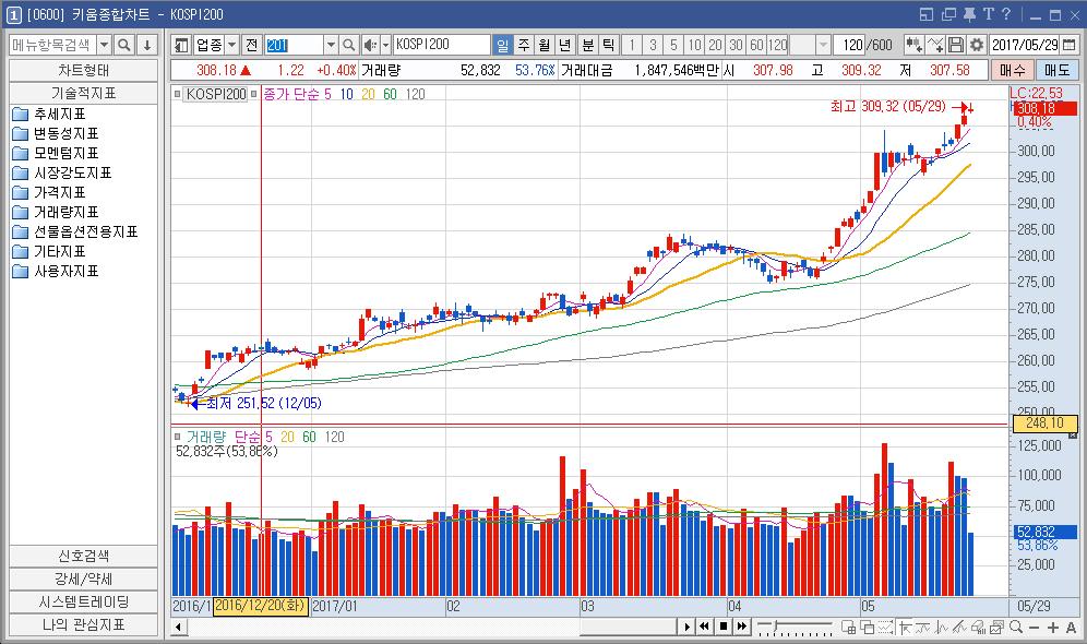 아마 내일(2017-05-30)정도 막바지 상승을 보이고 조정장세에 돌입할 것으로 본다