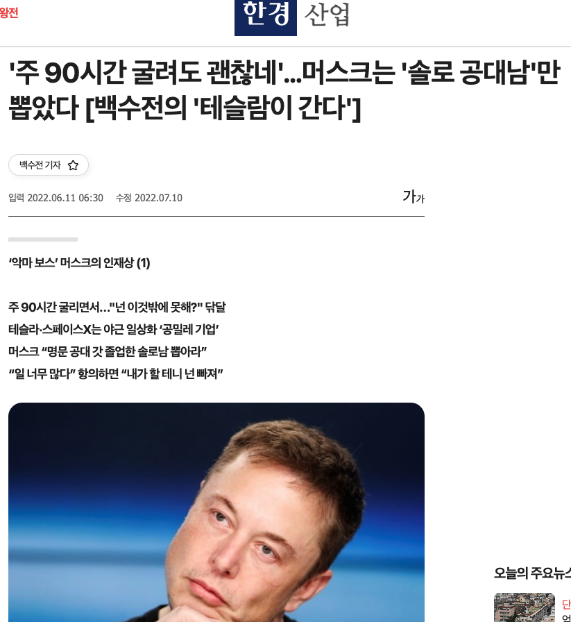 일론머스크를 좋게 포장한 여러 글들도 있지만…